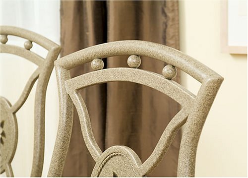 Notice the legs and their design..... everything about this set is classy and will enhance any decor. The legs are bronze in color that is smooth to the touch. The mission style is made to look rugged and beautiful. The table underside has a glass holder rack and wine bottle holder! The legs of the table also has foot protectors.