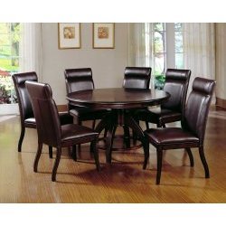 - Set includes one table 53.5-inches round and six dining chairs with 18-inch seat height- Constructed of hardwoods and climate controlled wood composites